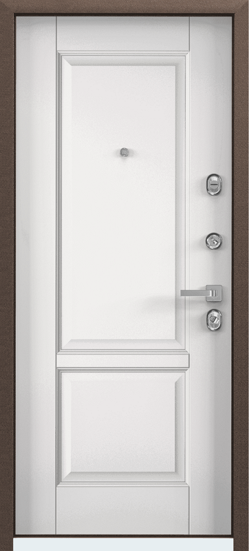 “PROFESSOR 4 +” – это непробиваемая мощь на страже Вашего комфорта. Срок службы от 20 лет! Новая рама закрытого типа. Усиленные вертикальные рёбра жёсткости, горизонтальные переборки, 2 листа стали в замковой и петлевой зоне по всей высоте полотна. Усовершенствованная система теплоизоляции «ТЁПЛАЯ ТИШИНА»: минеральная плита, слой STP GB, автомобильный войлок, защитно-декоративные панели повышенной толщины 16 мм. Общая толщина тепло - и звукоизоляционных материалов - от 85 до 101 мм. Двери Professor 4+ оснащены замковой системой премиум-класса: 2 замка, 4 (высшего) класса взломостойкости с ригелями толщиной 16 и 18 мм, 2 девиатора, вверху и внизу полотна, с приводом от верхнего замка, как дополнительные точки запирания. Ригели замков и девиаторы защищены от выбивания специальными стальными кожухами в раме двери. Беспрекословная надёжность подтверждена уникальной гарантией 7лет. Серия отделок "5D" - это объёмные фрезерованные рисунки, дополненные выступающими элементами из багета. Они созданы по мотивам туринских дверей, произведённых из массива бука. В сочетании с благородными цветами покрытий эти рисунки в 5 уровнях создают по-настоящему дорогостоящие образы. Благодаря такой входной двери Ваша квартира будет всегда радовать Вас своим статусным и торжественным входом