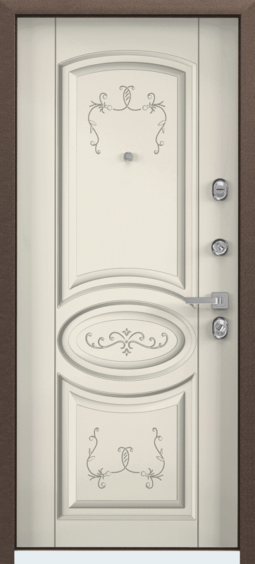 “PROFESSOR 4 +” – это непробиваемая мощь на страже Вашего комфорта. Срок службы от 20 лет! Новая рама закрытого типа. Усиленные вертикальные рёбра жёсткости, горизонтальные переборки, 2 листа стали в замковой и петлевой зоне по всей высоте полотна. Усовершенствованная система теплоизоляции «ТЁПЛАЯ ТИШИНА»: минеральная плита, слой STP GB, автомобильный войлок, защитно-декоративные панели повышенной толщины 16 мм. Общая толщина тепло - и звукоизоляционных материалов - от 85 до 101 мм. Двери Professor 4+ оснащены замковой системой премиум-класса: 2 замка, 4 (высшего) класса взломостойкости с ригелями толщиной 16 и 18 мм, 2 девиатора, вверху и внизу полотна, с приводом от верхнего замка, как дополнительные точки запирания. Ригели замков и девиаторы защищены от выбивания специальными стальными кожухами в раме двери. Беспрекословная надёжность подтверждена уникальной гарантией 7лет. Серия отделок "5D" - это объёмные фрезерованные рисунки, дополненные выступающими элементами из багета. Они созданы по мотивам туринских дверей, произведённых из массива бука. В сочетании с благородными цветами покрытий эти рисунки в 5 уровнях создают по-настоящему дорогостоящие образы. Благодаря такой входной двери Ваша квартира будет всегда радовать Вас своим статусным и торжественным входом