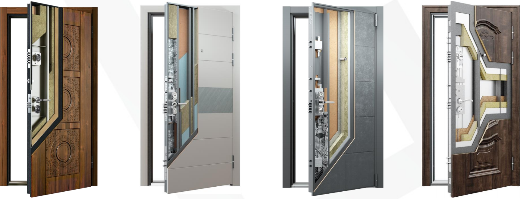 Чтобы продукция завода Torex была востребована и отвечала ожиданиям и запросам клиентов, последовало изменение ассортимента выпускаемых дверей. Сегодня в ассортименте представлены конструкции монолитных, каркасных дверей и дверей и терморазрывом.