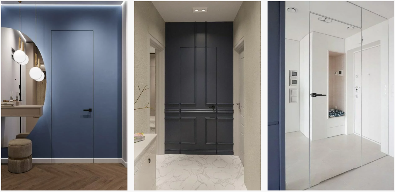 - Отсутствуют наличники и доборы, что создает эффект целостности с интерьером.